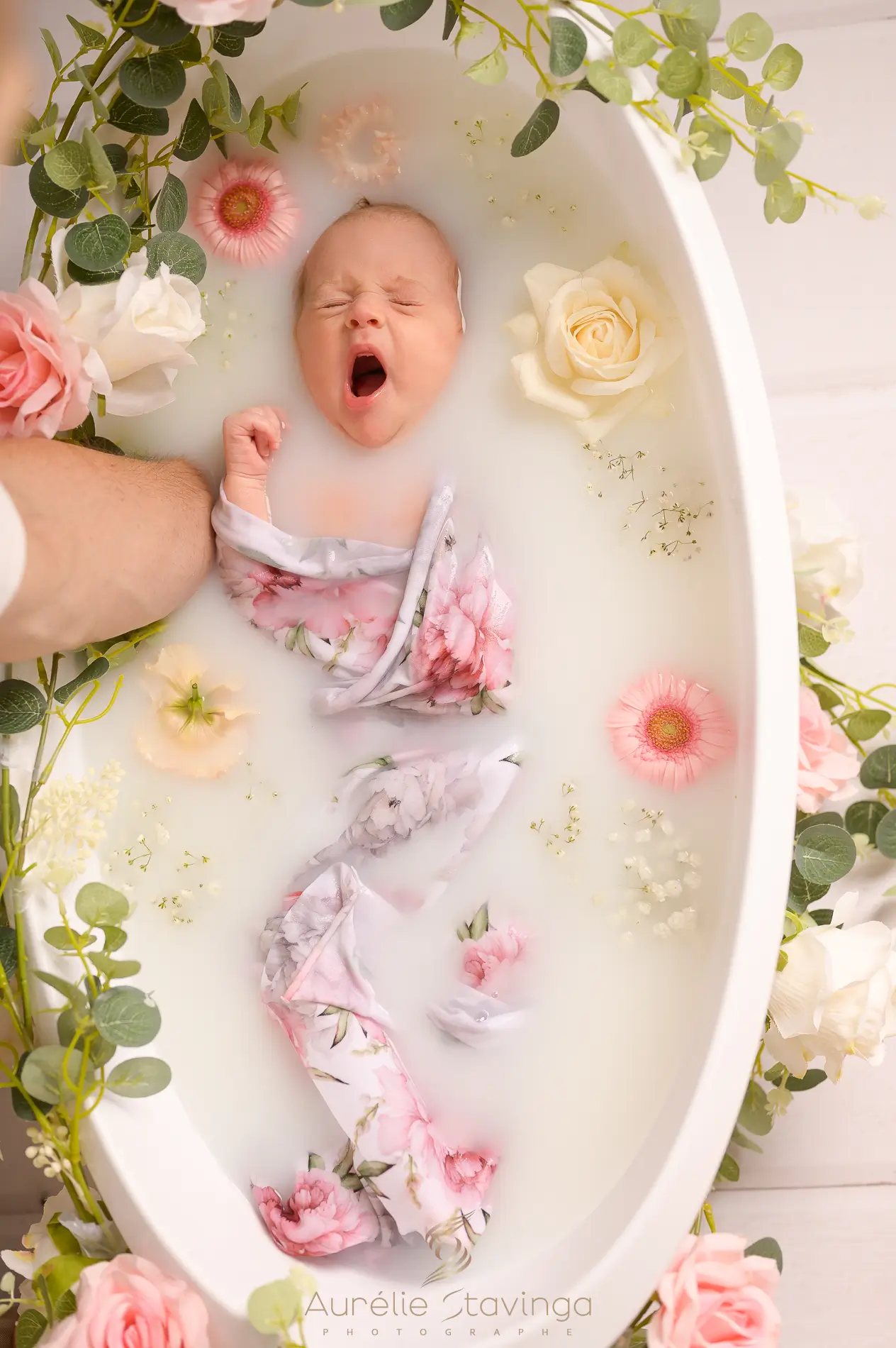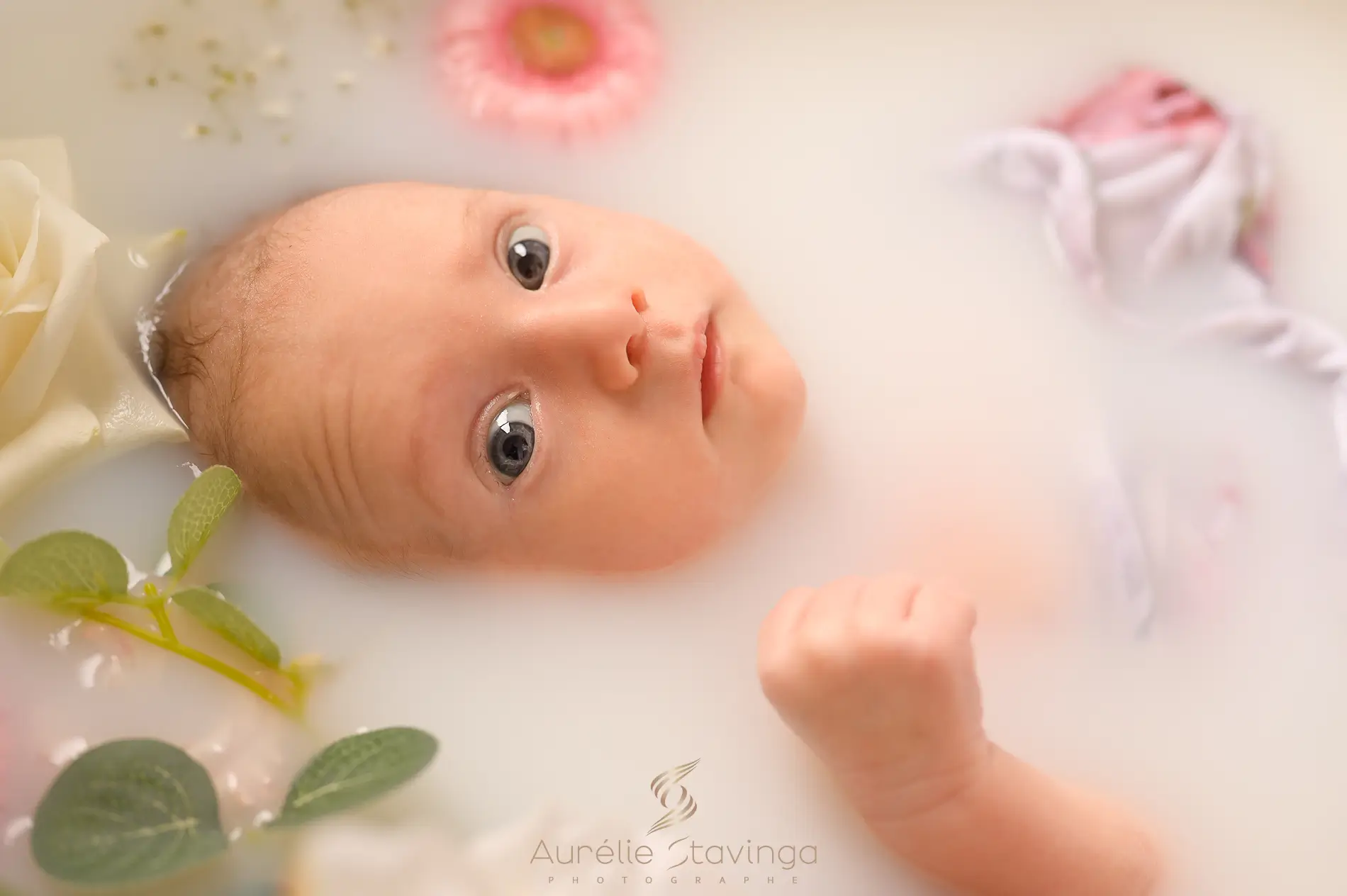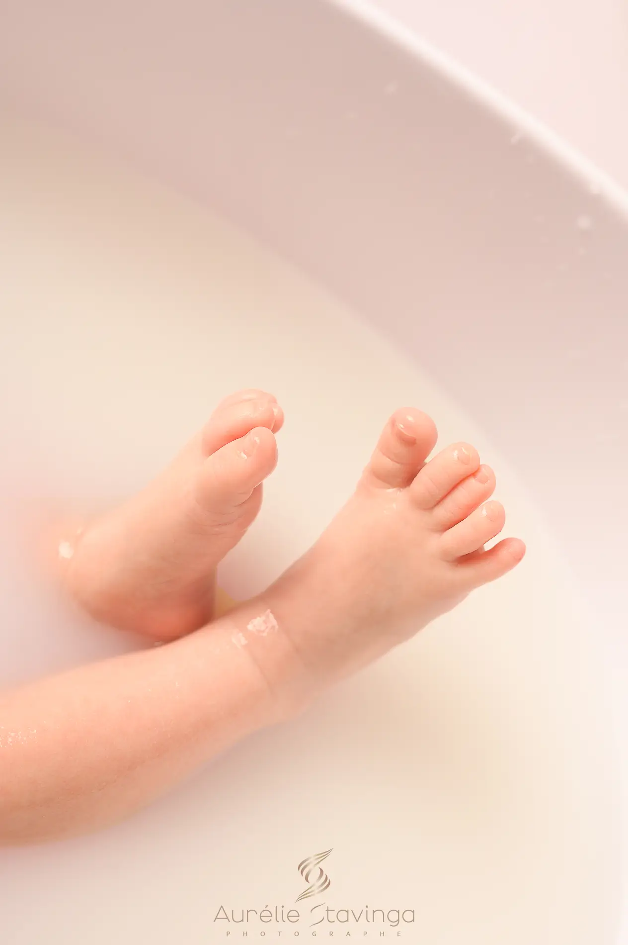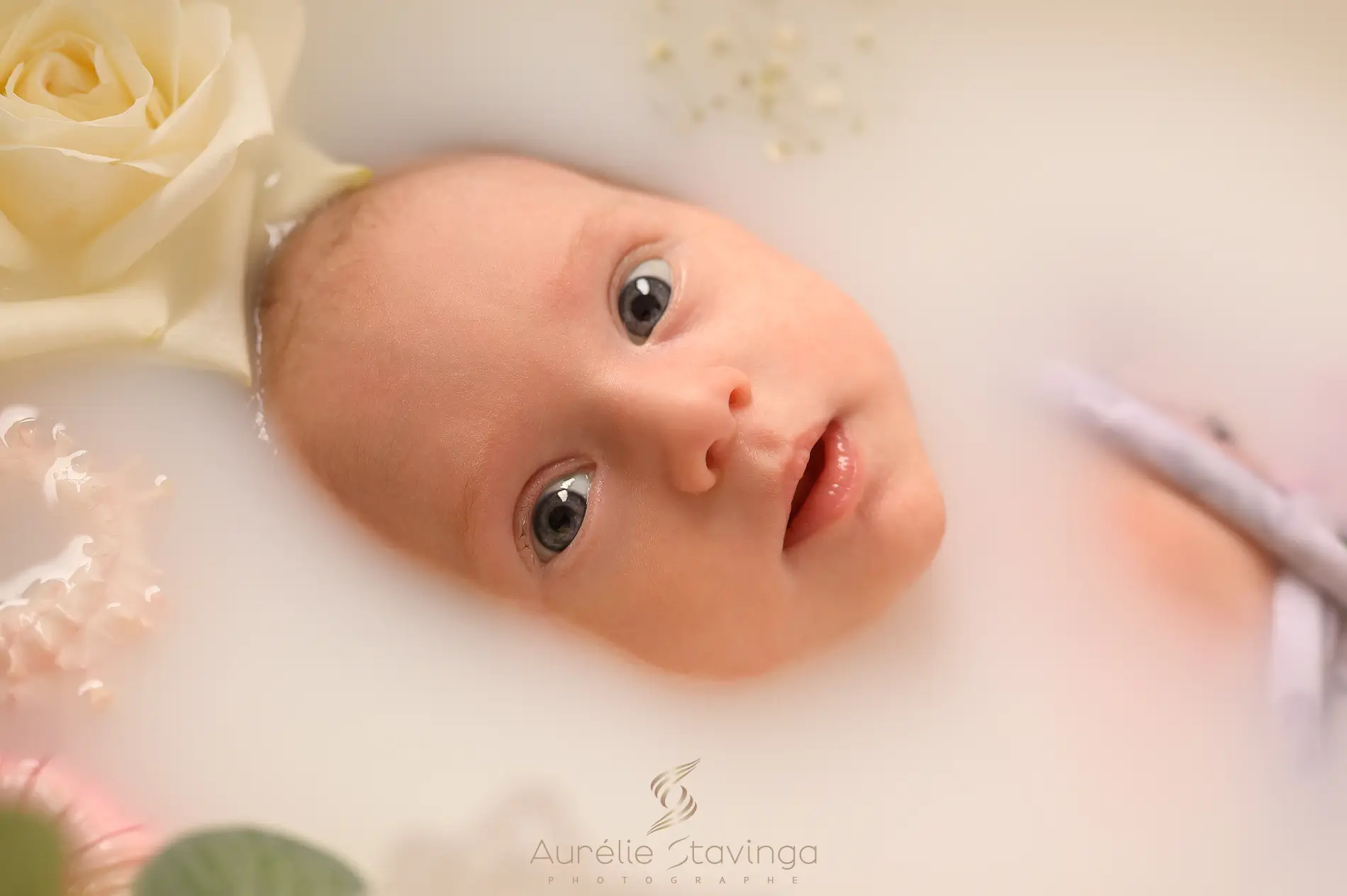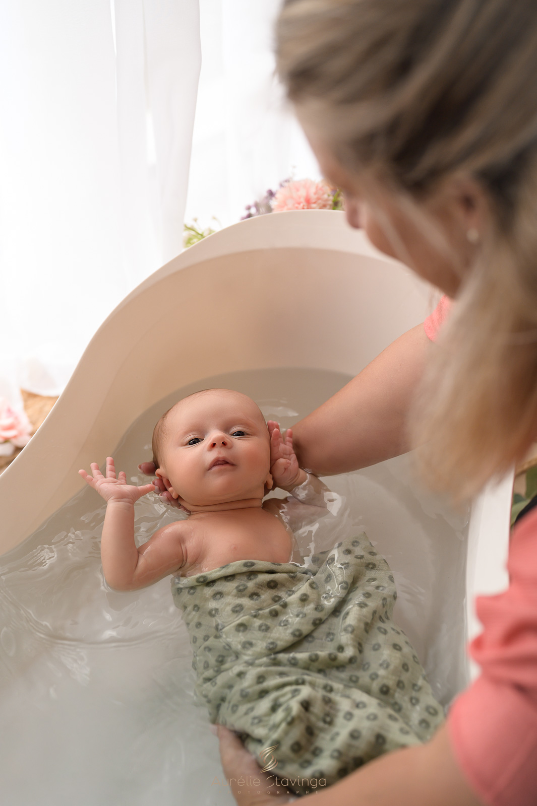 Séance photo bebe bain enveloppé - Voiron, Grenoble et Chambéry