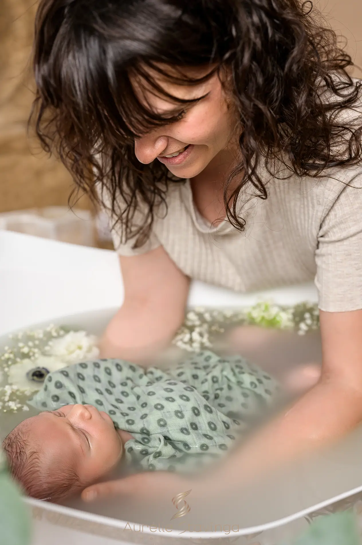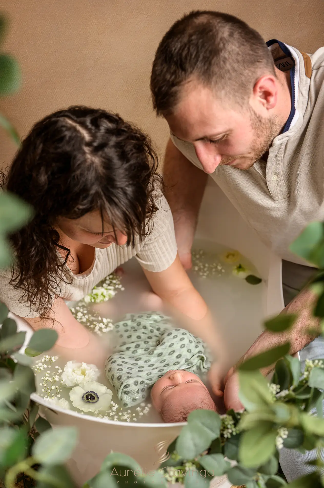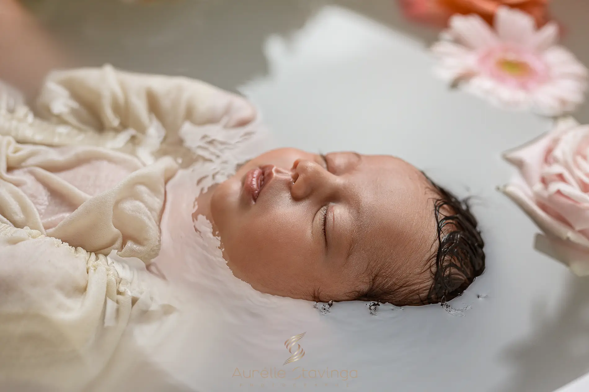 Un instant de pure douceur. Le temps se suspend dans le cocon de votre bébé. Le bain enveloppé n’est pas seulement une séance photo : c’est un moment précieux et sensoriel, où votre nouveau-né découvre la chaleur et la sécurité de l’eau, guidé par les mains expertes de Marie, spécialiste. Je suis là pour capturer chaque regard, chaque geste, chaque souffle, pour créer des images qui traverseront les années.