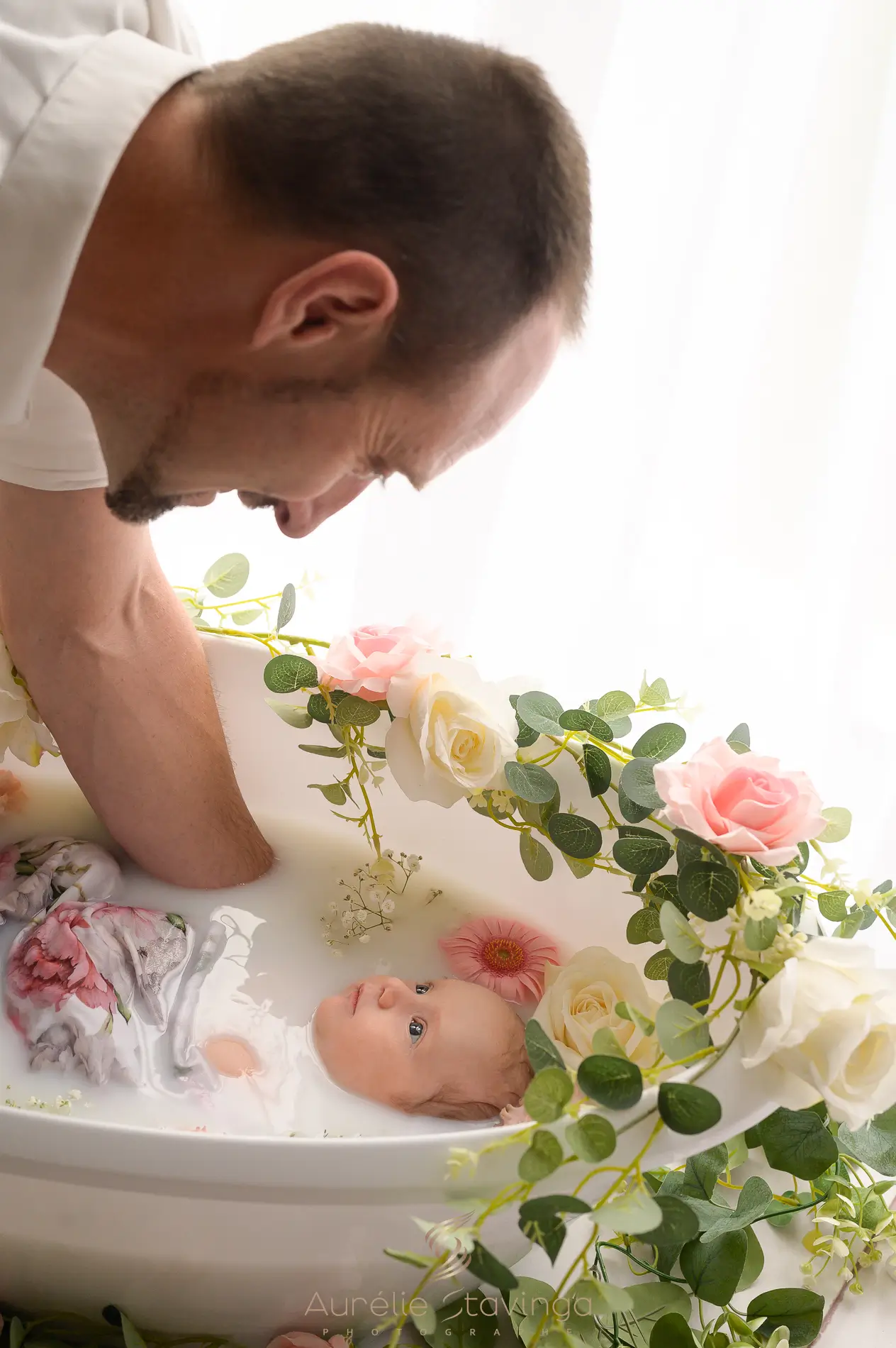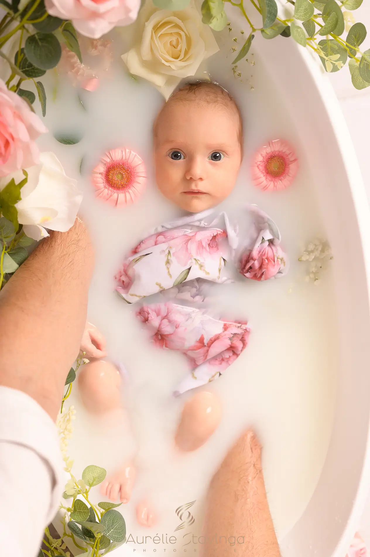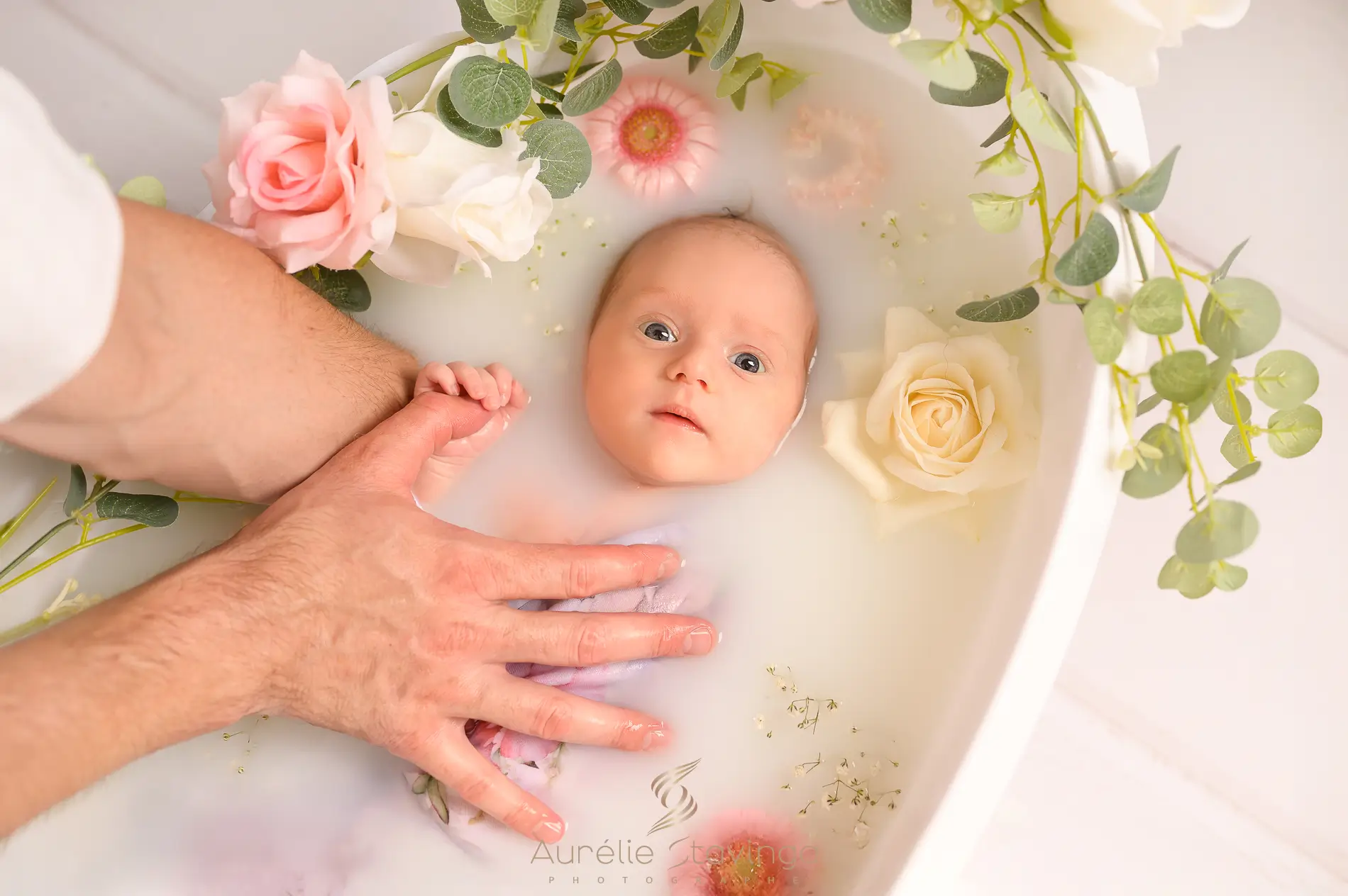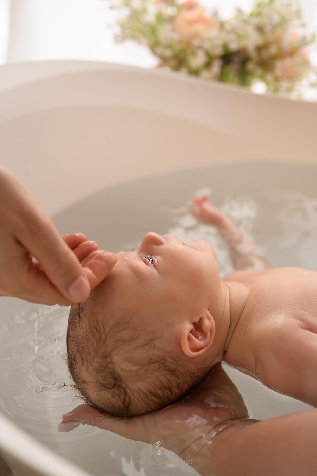 Un instant de pure douceur. Le temps se suspend dans le cocon de votre bébé. Le bain enveloppé n’est pas seulement une séance photo : c’est un moment précieux et sensoriel, où votre nouveau-né découvre la chaleur et la sécurité de l’eau, guidé par les mains expertes de Marie, spécialiste. Je suis là pour capturer chaque regard, chaque geste, chaque souffle, pour créer des images qui traverseront les années.